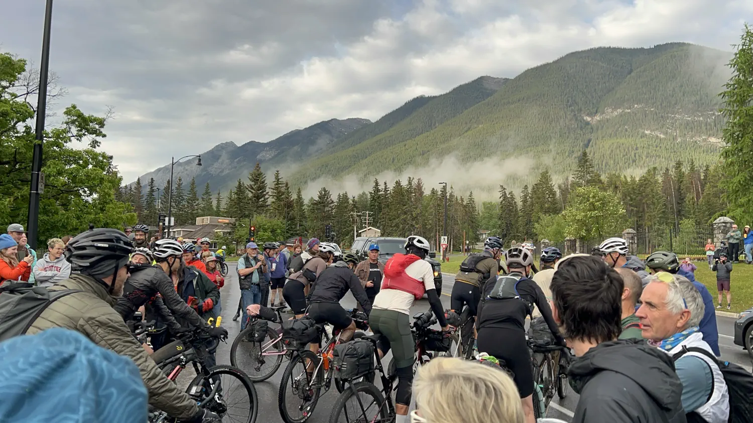 Gallery of the starting waves for the 2025 Tour Divide, leaving the YWCA Hotel in Banff, AB