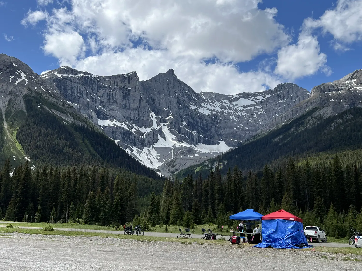 As I was cruising down the road, I noticed what looked like police vehicles and pop-up tents stationed every few kilometers. It turned out that these were checkpoints for the G7 Summit. They were ensuring that nobody entered the closed trails and roads that were creating a secure perimeter for the world leaders' summit.