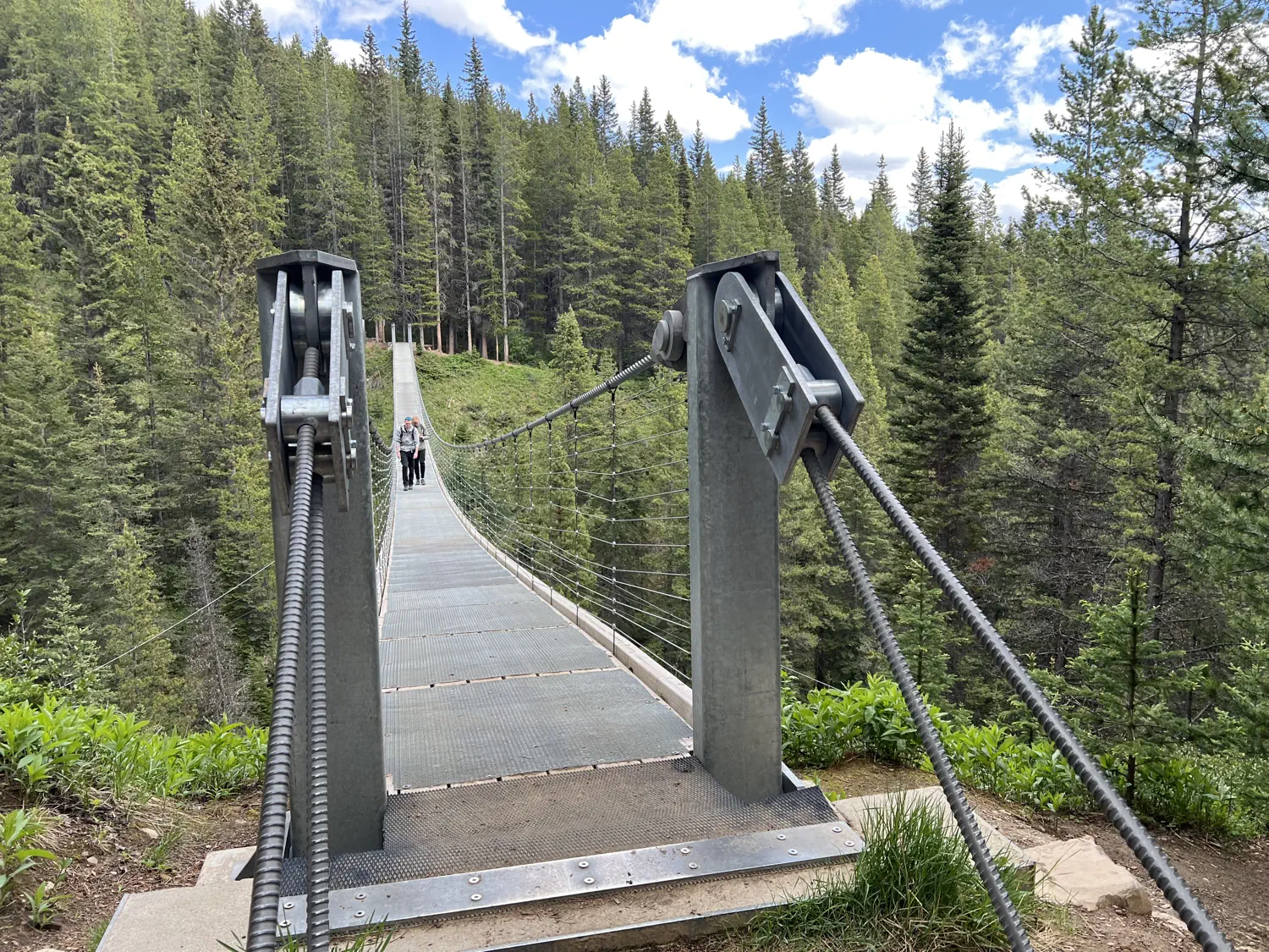 Gallery of navigating the High Rockies Trail singletrack section, along with the famous suspension bridge crossing