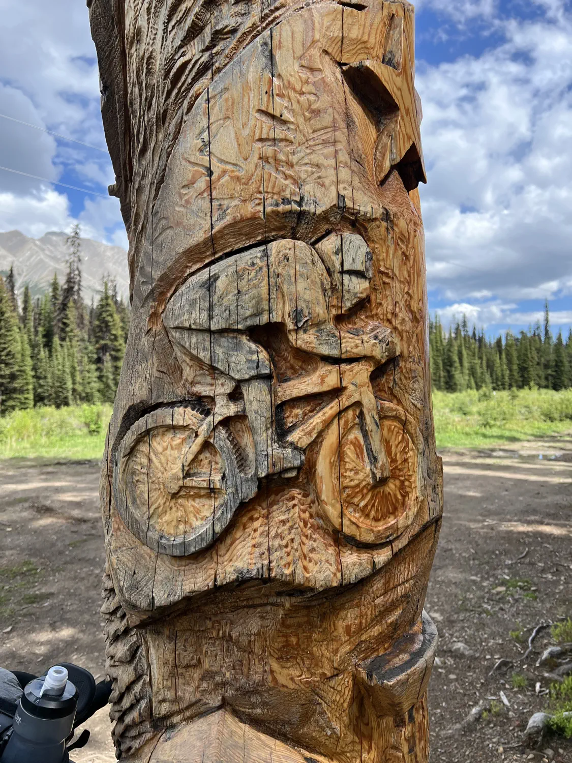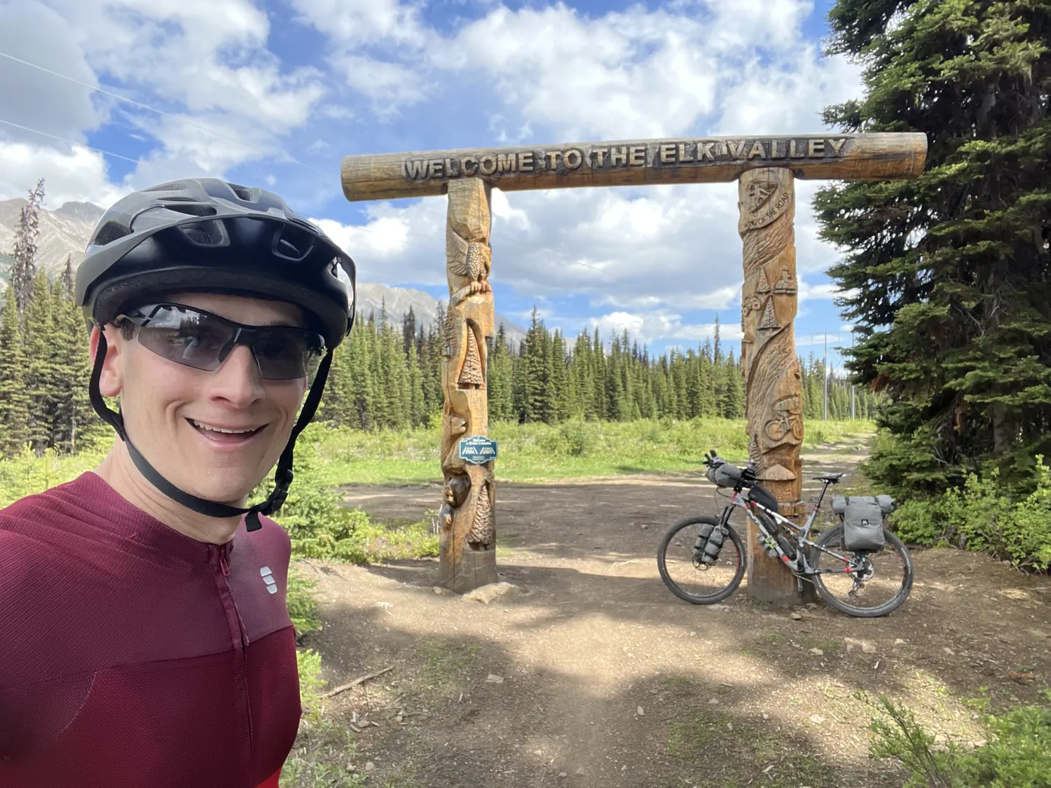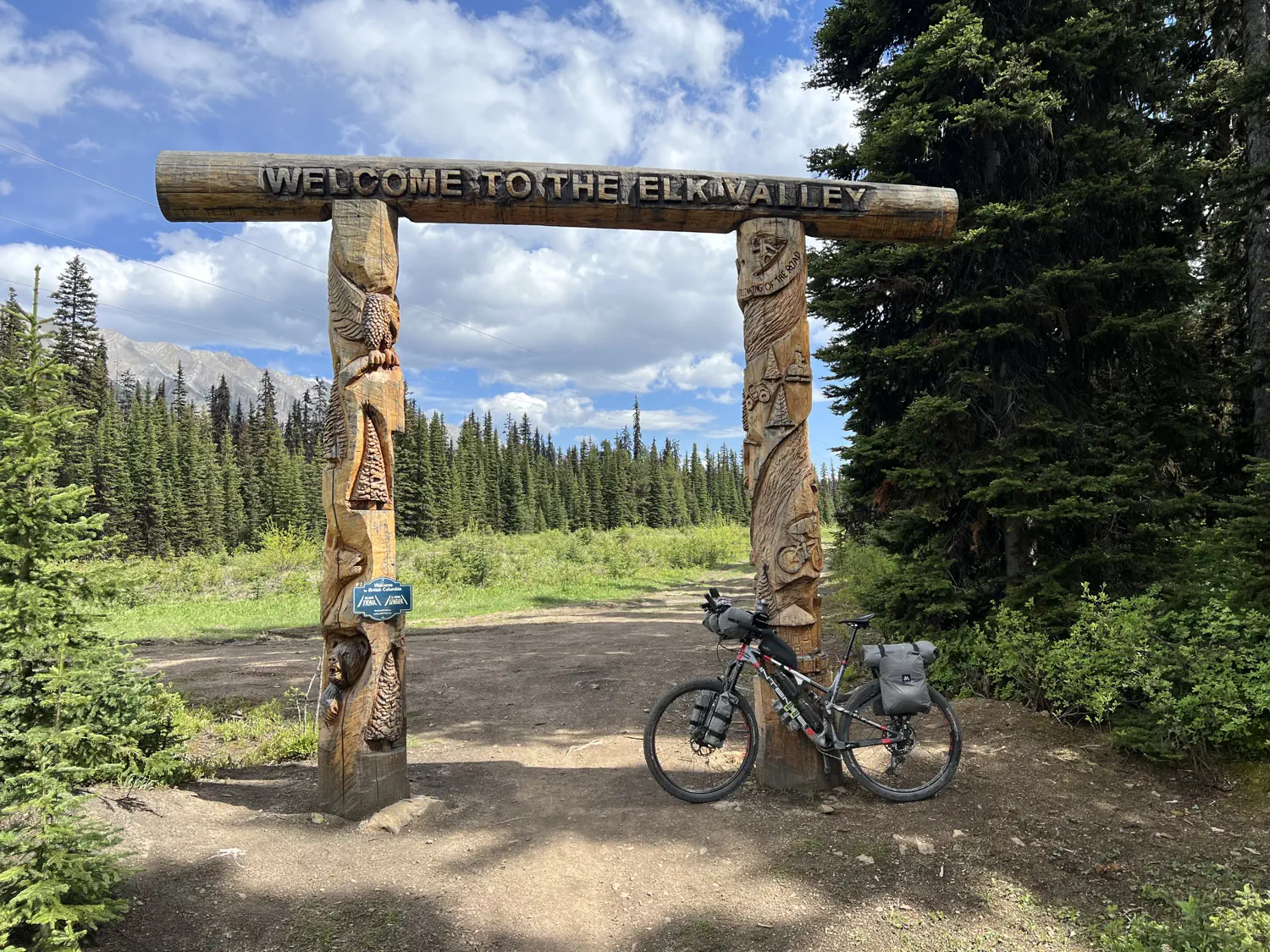 After pushing, and riding, and even more pushing, I eventually crested Elk Pass and reached the famous "Welcome to the Elk Valley" totems. Iconic elements such as this act like milestones and help me to realize just how much progress I was really making. I believe that this is also the crossover point between the Alberta and British Columbia Canadian provinces.