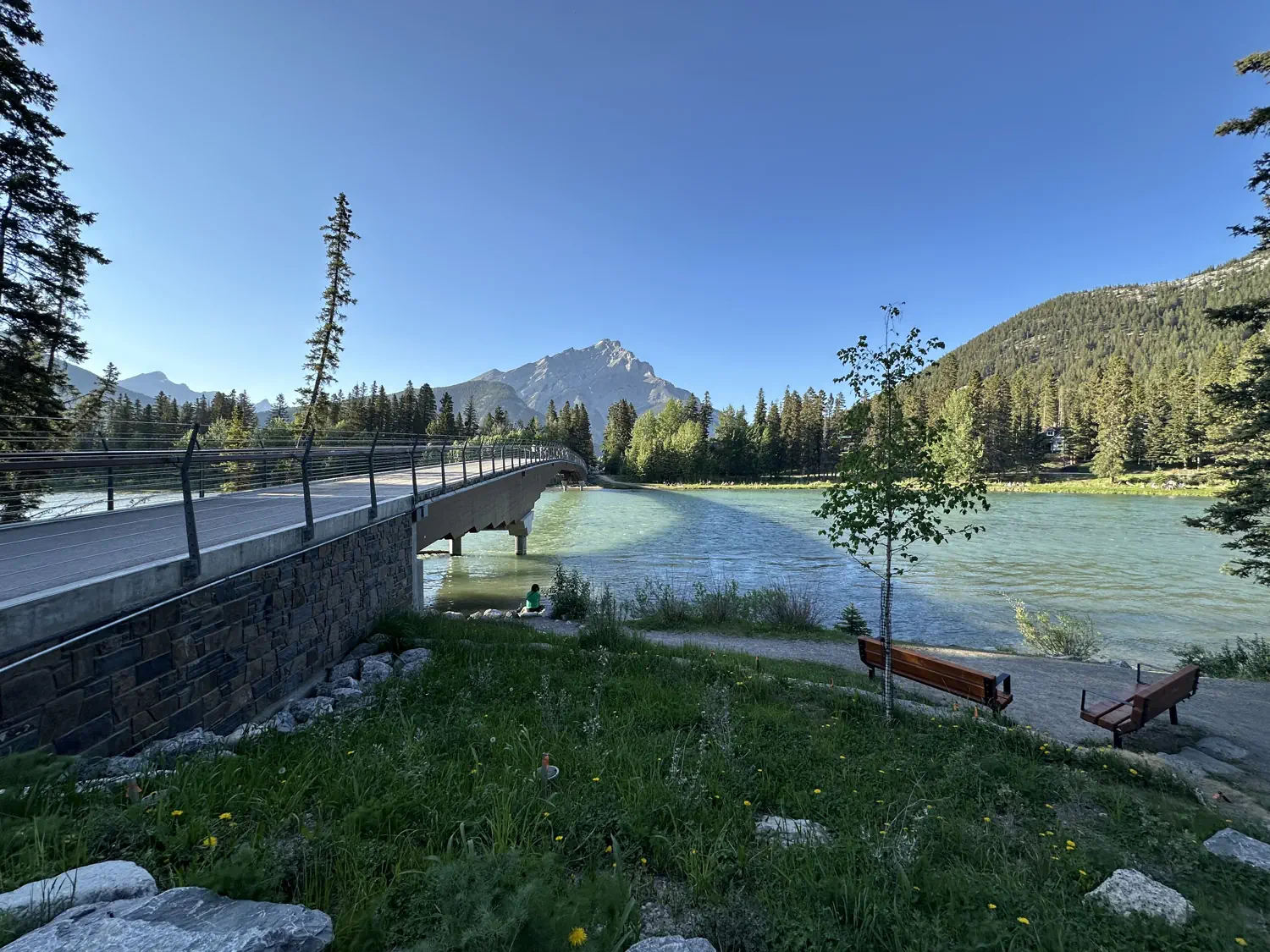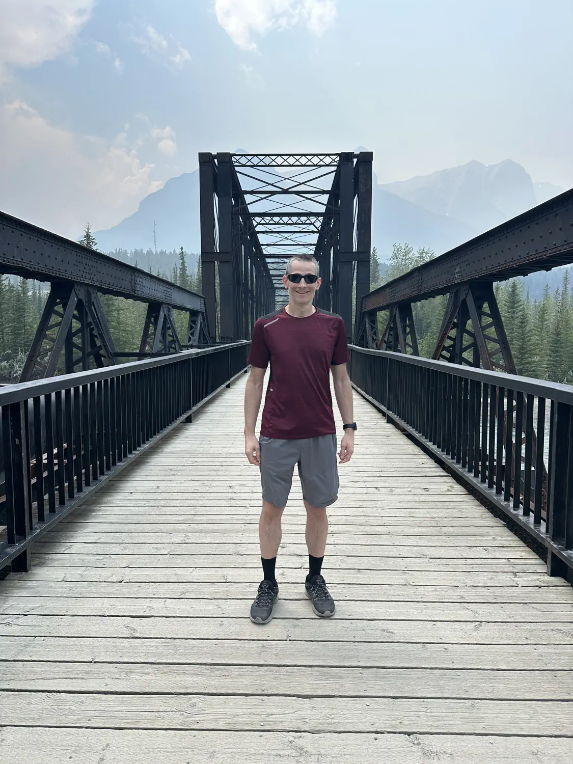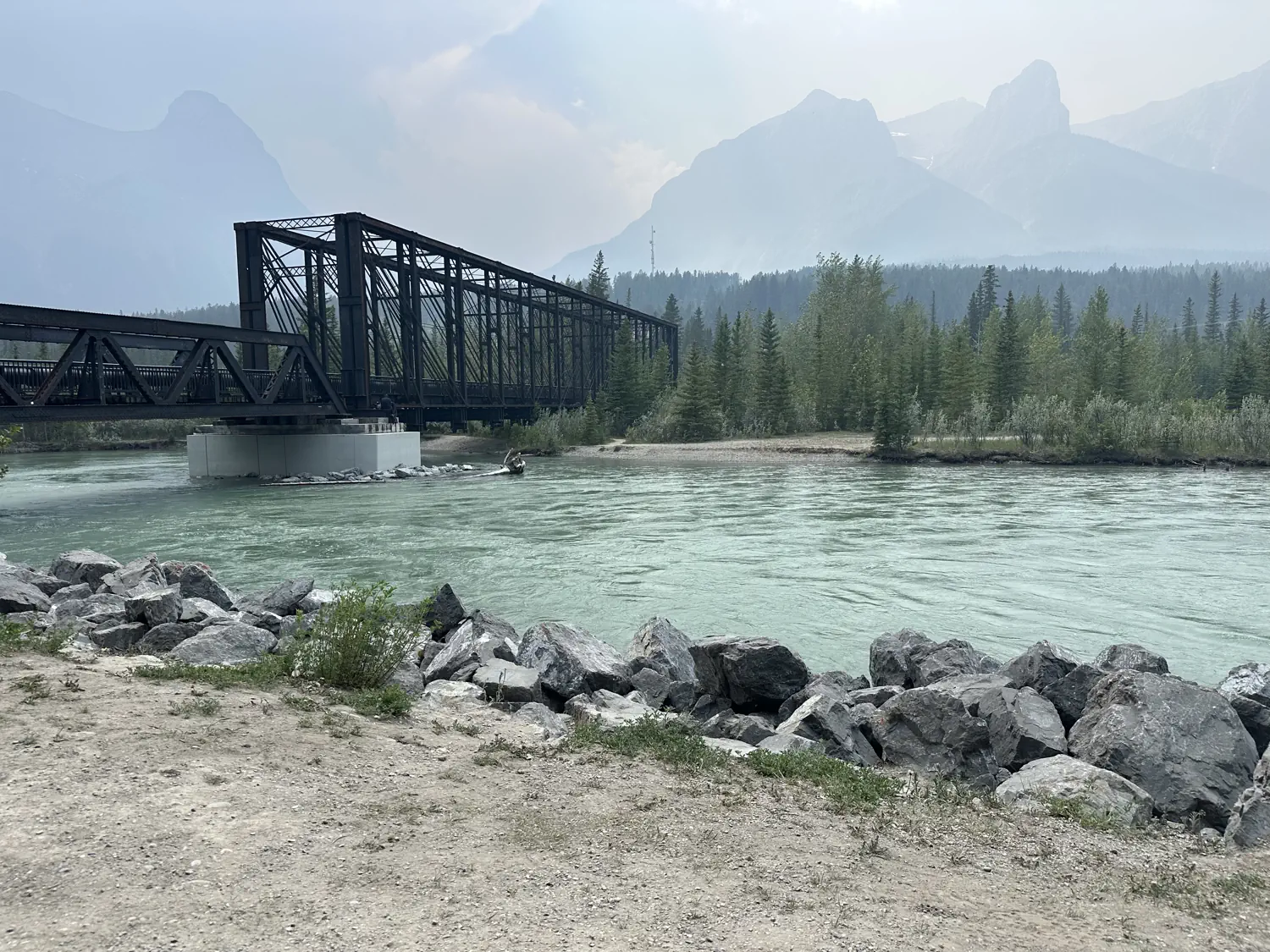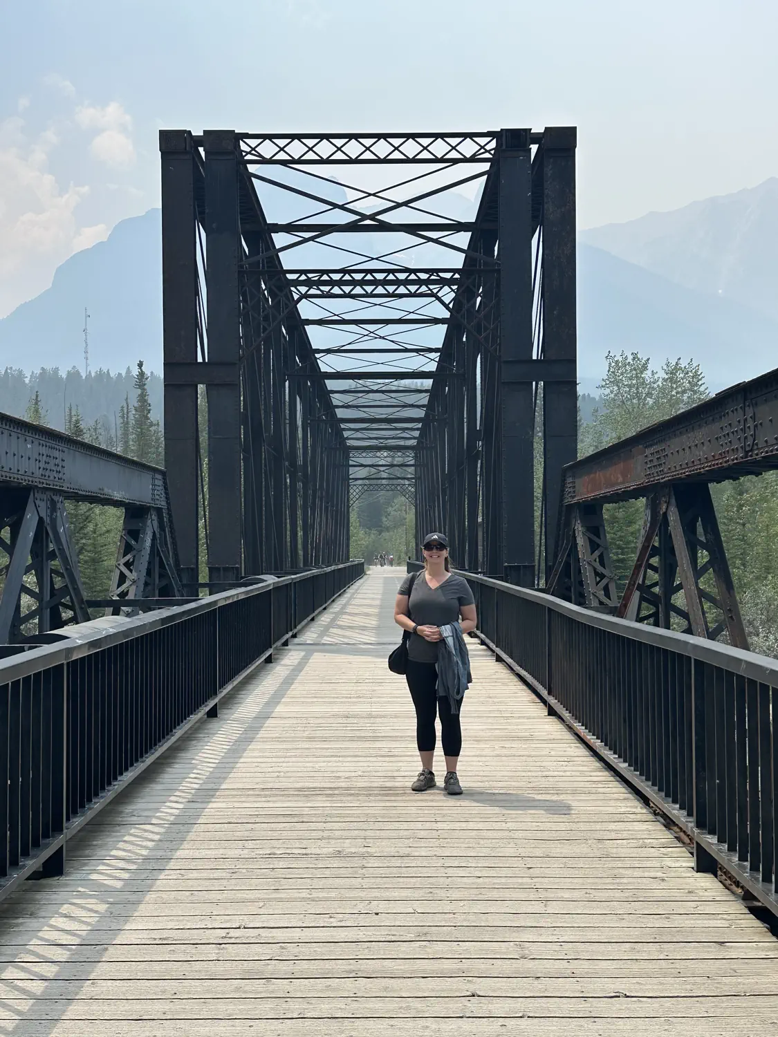 As I was exploring town, Keith texted that he was nearby. As planned, we were able to meet for lunch at The Local and enjoyed more time in Canmore. I meant to visit the Canmore Engine Bridge while in town, but forgot, as I was looking forward to getting back to the room to shower after that hike. Luckily, we found ourselves in Canmore later in the week and were able to see the bridge together. The historic bridge is featured in HBO’s The Last of Us; therefore, it has gained worldwide recognition recently.