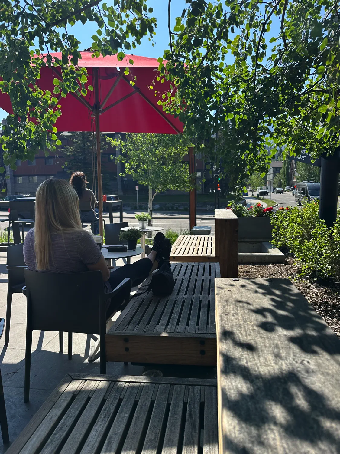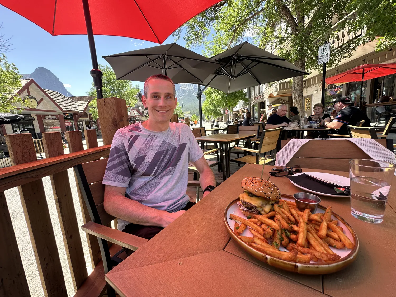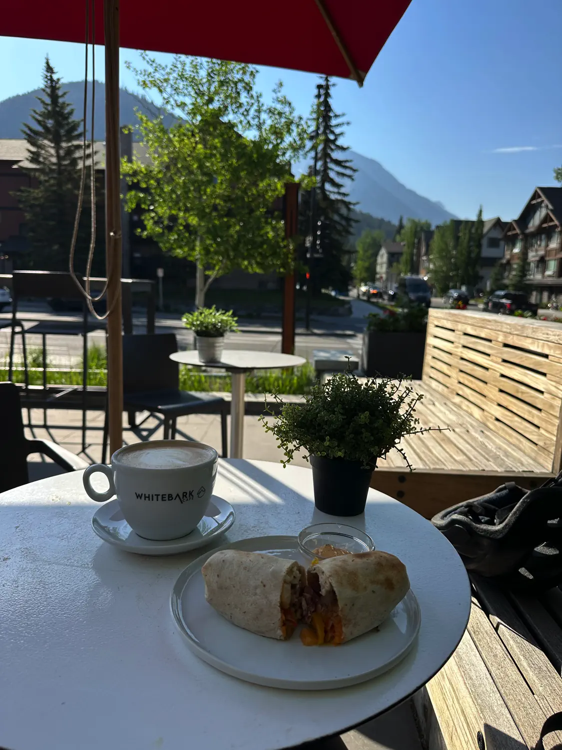 On this day, I started my day at Whitebark Cafe in Banff. I was living my best life in this moment… a latte, a breakfast burrito, mountain views, and people watching! Keith rode his bike to meet me and then took off on a practice ride while I explored more of the downtown shops.