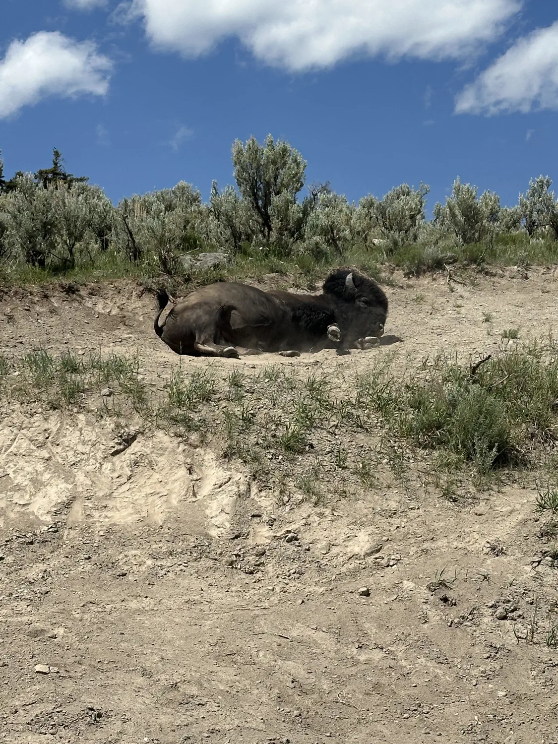 We drove the upper loop clockwise, and it took us approximately 12 hours from the time we left the hotel until we returned! When I mapped the route, it gave a drive time of over 6 hours, so we basically spent as much time at the stops as we did driving. I had warned my mom that there would be a lot of getting in and out of the car, possible stretches of time waiting to see animals, or stopped traffic because of animals. I think it's safe to say that the best part of Yellowstone for both of us is the excitement around seeing the animals, especially the bear!