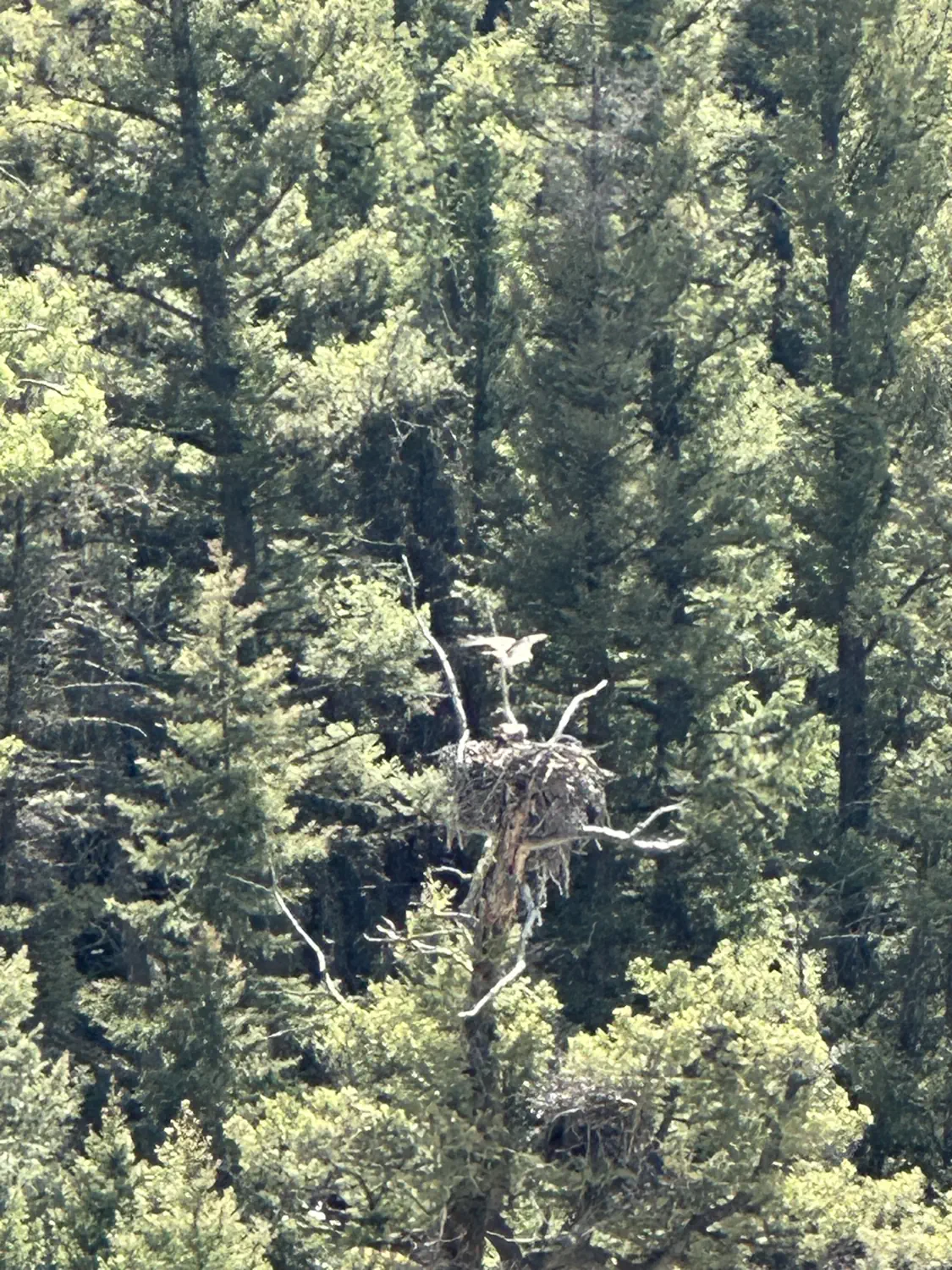 We stopped at nearly every pull-off and attraction that looked interesting and/or had parking. This meant we saw a lot of the most popular attractions, including waterfalls, geysers, paintpots, and more. Two of the big highlights of the day were seeing a bear and watching an osprey return to its nest with food. We were quite far away, but could make out what was going on with our binoculars.