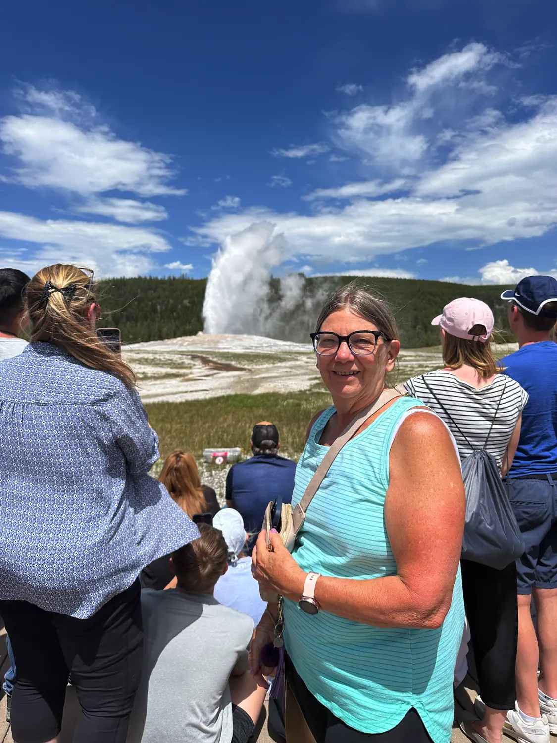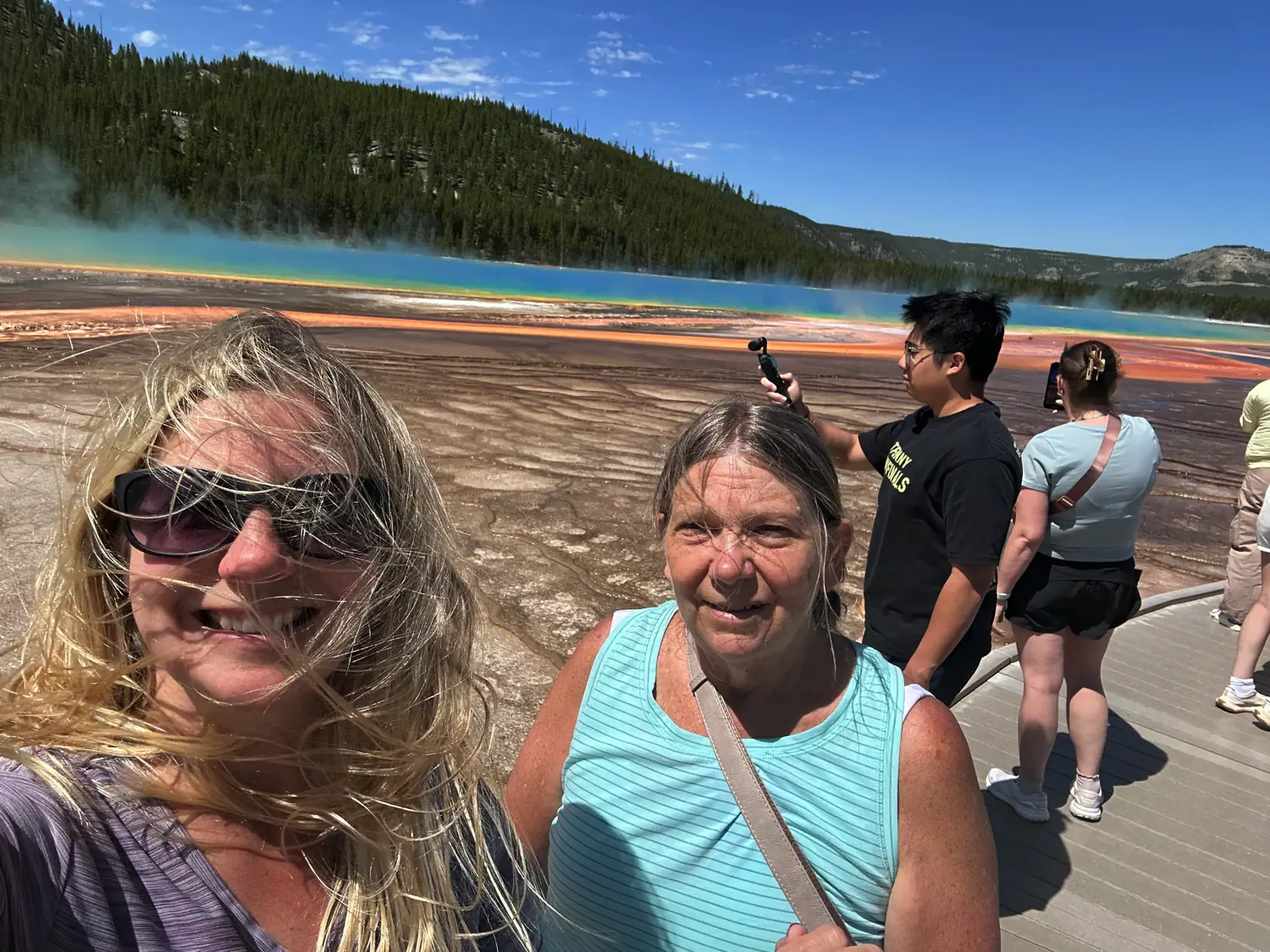 I was looking forward to seeing my mom's reaction to seeing the Grand Prismatic Spring and the Old Faithful Geyser. Arriving at Grand Prismatic, it wasn't too busy, so we had plenty of time to take pictures and just stand in awe of this unique spot. It's the largest hot spring in the US and the third largest in the world. Unfortunately, we didn't end up hiking to the overlook. It was quite busy there and would probably take a chunk of time we weren't sure we wanted to give up. I would definitely recommend doing this if you have time.