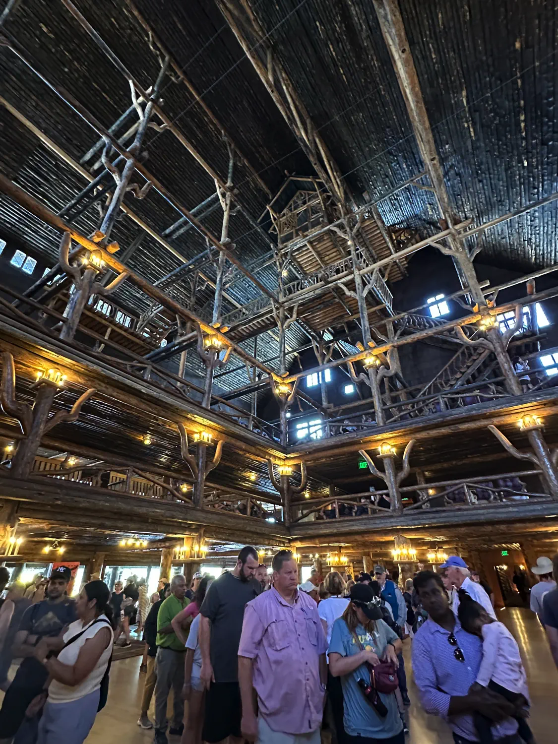 Old Faithful is another iconic stop on the lower loop and a must-do. Not only do you have the chance to see the Old Faithful Geyser erupt, but you must also explore the Old Faithful Inn. Take your time walking around the rustic inn and enjoying the multi-story log lobby with a stone fireplace. We were lucky enough to see the eruption as we first walked up to the area and then again after we left the inn.