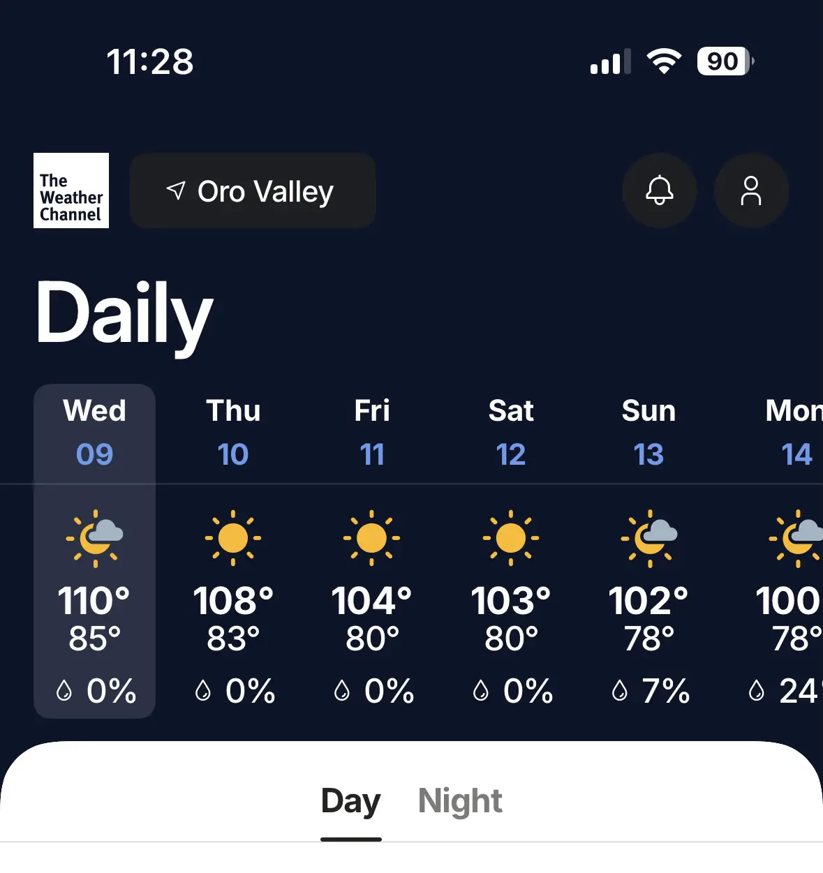 We spent the next few days working and then trying to find something to do in the evenings. Oro Valley is VERY hot in the middle of the summer, so most outdoor activities aren't very desirable. We also learned that the community we were staying in is mainly seasonal residents. They leave in the hot summer months and return in the warm winter months. In our building of six units, only one had occupants. From what we saw of staying there 18 nights, I'd guess this was typical of each building. We referred to ourselves as living the "retirement" lifestyle. Restaurants were busy in the late afternoon and closed early. Activities like museums were only open for a few hours in the middle of the day or closed altogether. This made it difficult to do something in the afternoon since we were working, although we were done by 2 pm local time. We ended up enjoying local restaurants, driving around to look at houses, going to a movie, etc.