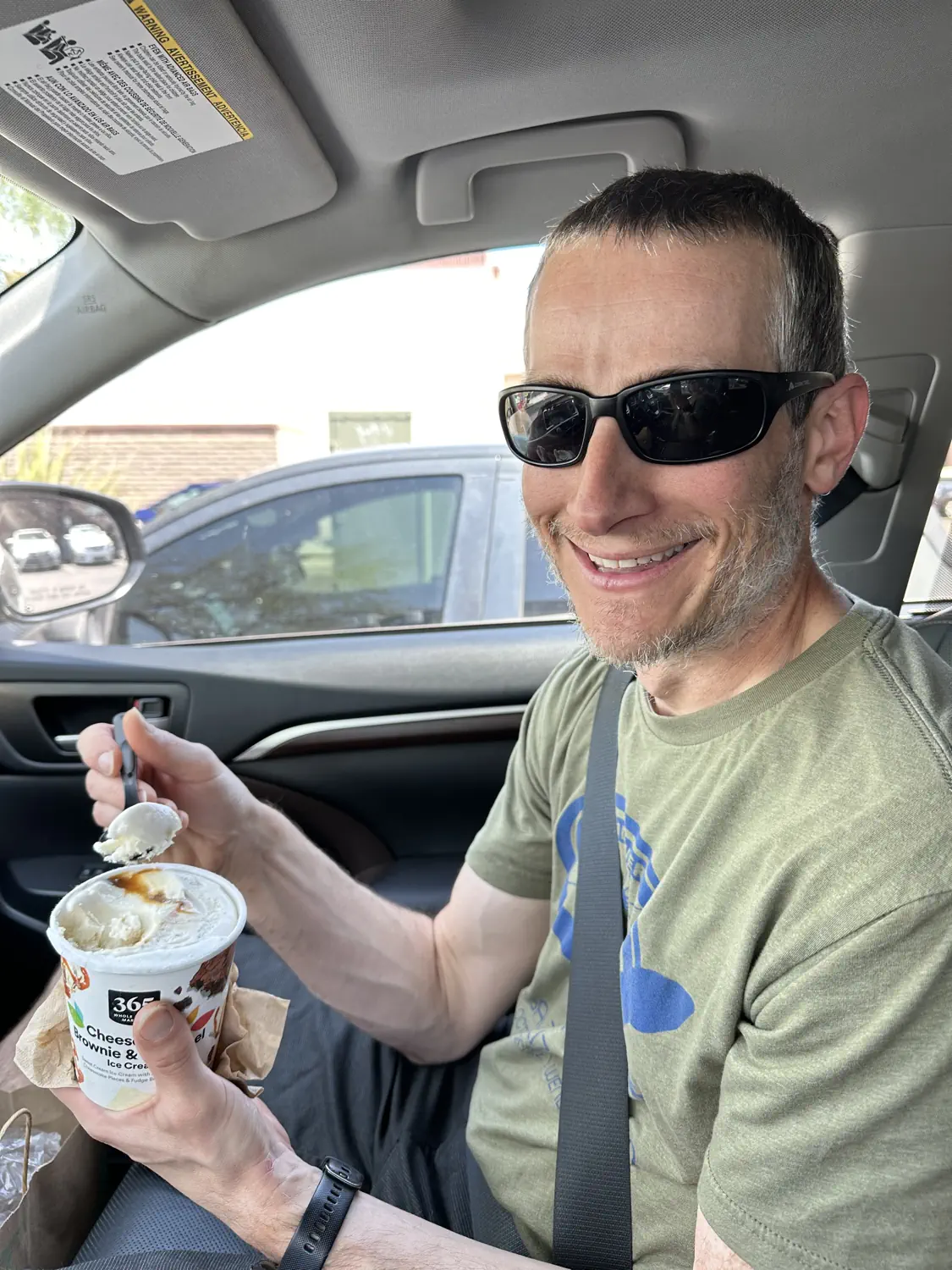 By Sunday, he was ready to leave the condo, so we went to Teaspoon for breakfast. He ordered two breakfast plates! Next door was a grocery store, and we needed to grab a couple of things. Keith got ice cream for his "breakfast dessert." He still required a great deal of food each day to help replenish his body after the race.