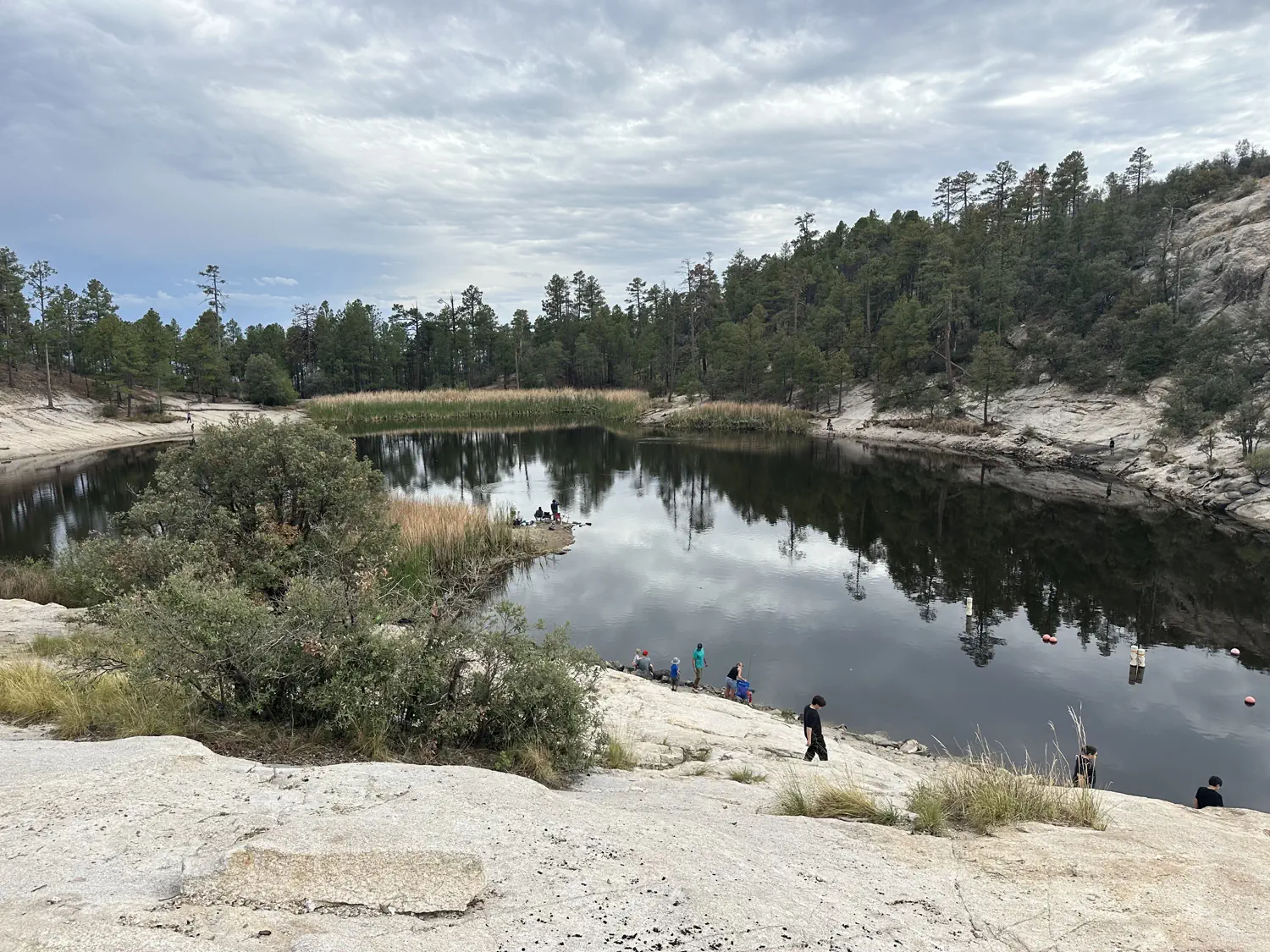 On the way back down Mt. Lemmon, we stopped by Rose Canyon Lake. Unfortunately, it was really sad because the water was so low and didn't look anything like the pictures I'd seen. We wandered around pretty much in disbelief. It was nice to still see people accessing the area, though. We saw some fishing, swimming, and walking pets. Our next stop was Windy Point Vista for sunset. We explored the rocks and the vast views of the valley. It was a great way to conclude our time in this area.