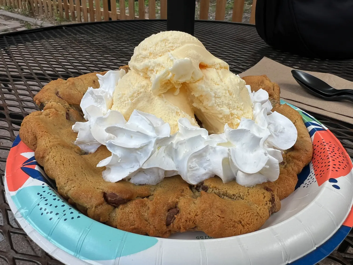 Next, we stopped in the tiny town of Summerhaven. I'd guess the entire town is about half a mile long. We knew we wanted to go to the Mt. Lemmon Cookie Cabin for a giant cookie and the General Store and Gifts for fudge. By the time we ate our cookie, the fudge smelled amazing, but we opted to skip it. We walked through several tiny shops and enjoyed a meal at Sawmill Run Restaurant. We even saw a pet chicken riding in a bike basket! Note the picture below where the chicken is resting on the handlebars.