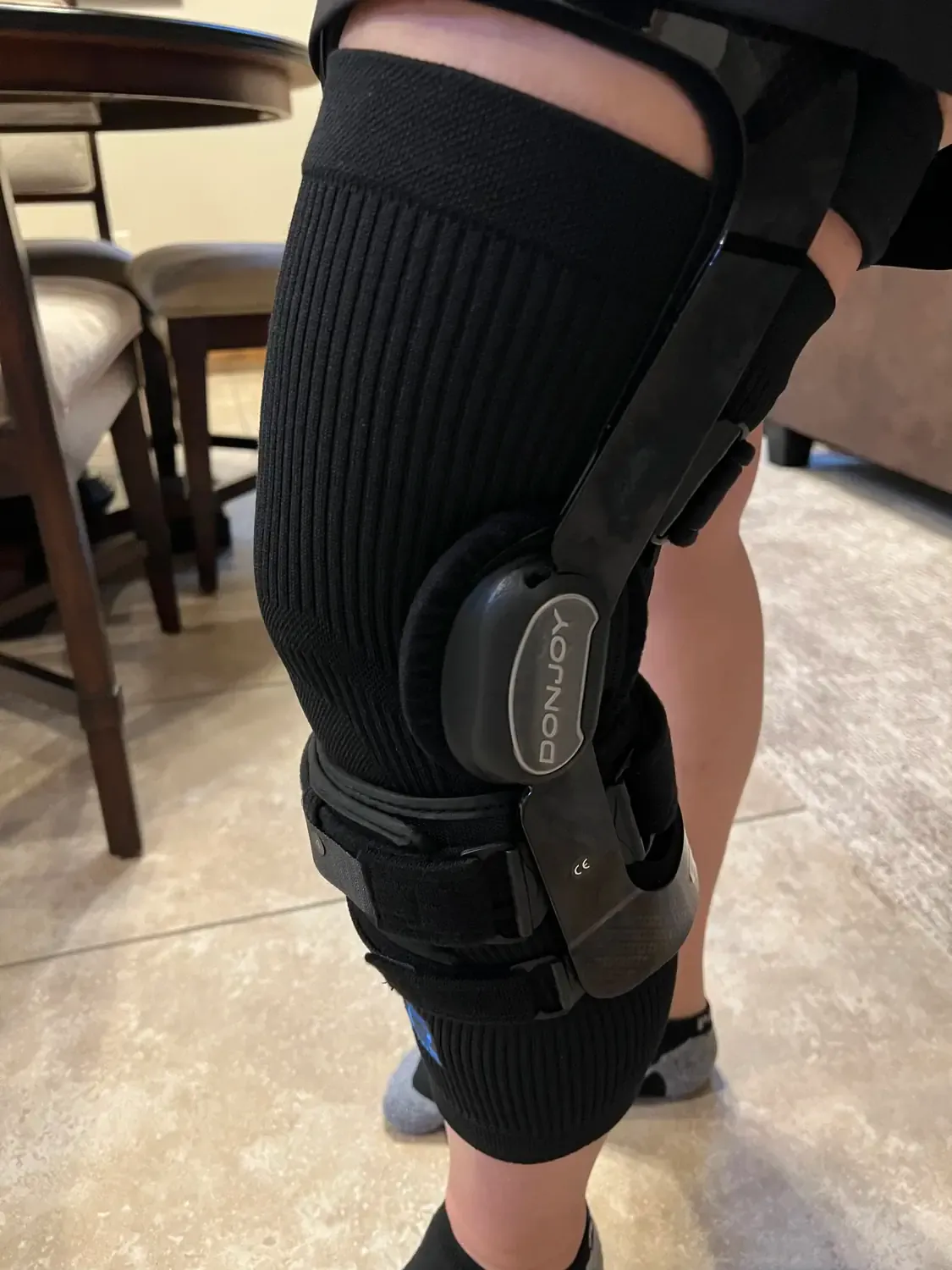 So, we drove to Ortho Pros of Utah in American Fork, UT, to get Lindsey fit for a brace. They were able to quickly fit Lindsey with a Donjoy Full Force functional LCL brace. They also recommended a special Reparel knee sleeve that is supposed to provide additional recovery through compression and a unique fabric that simulates low-dose infrared exposure to the injured area.