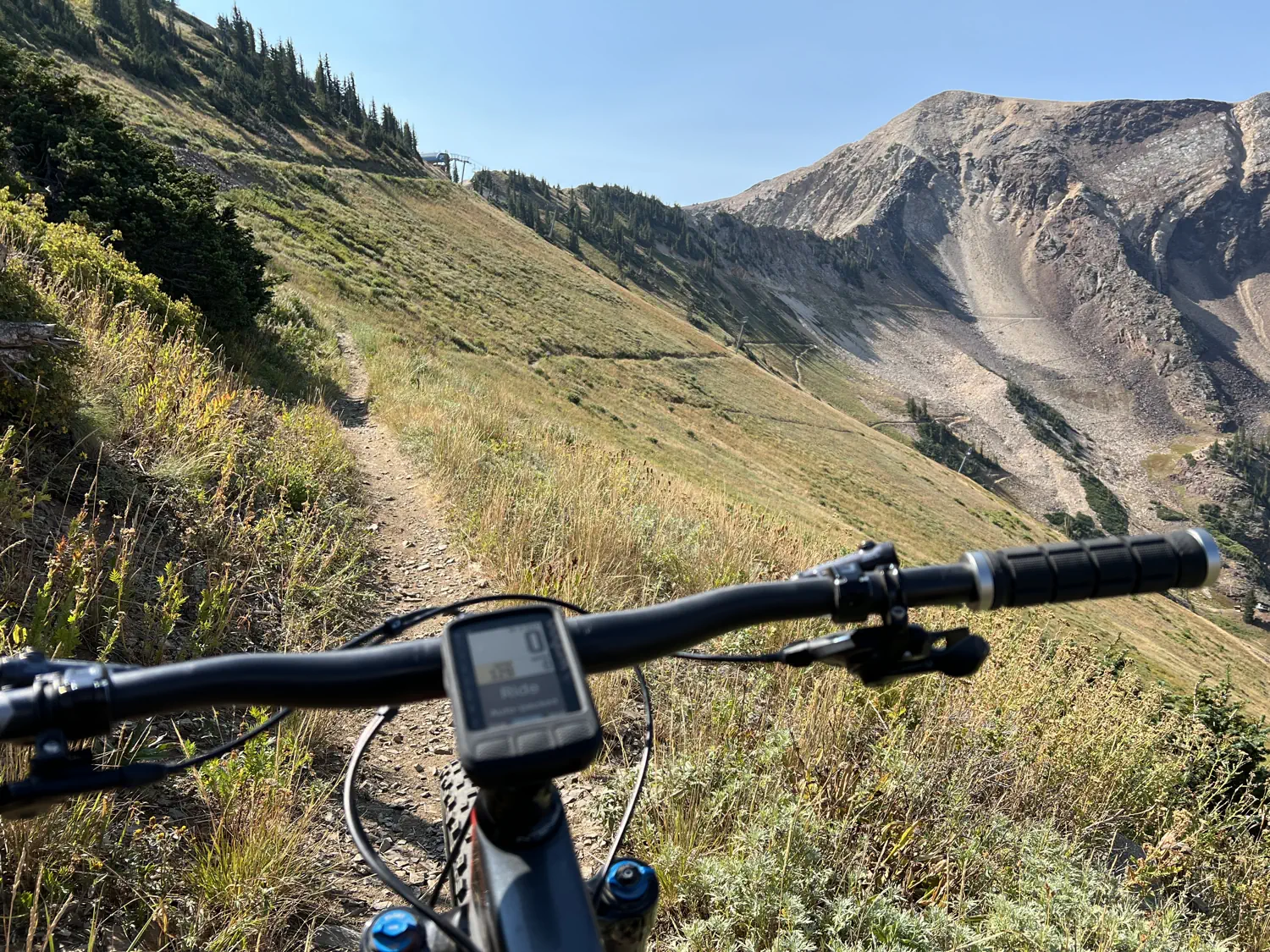 Keith has finally converted his bike back to a normal mountain bike. He has removed the aero bars, additional hand grips, and all of the comfortable bar tape. Why did he decide to finally make the swap, you might ask... to ride the Snowbird Big Mountain Trail with his friends! 🚵