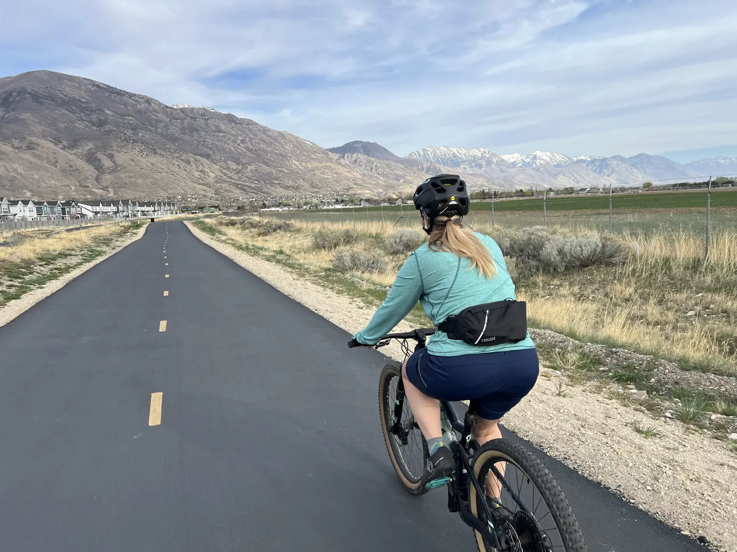 We rode a scenic section between the Wade Springs Trailhead and Highland Glen Park. This is a fantastic section of the trail as it has expansive views of the Wasatch Mountains, with a focus on Mount Timpanogos and American Fork Canyon.