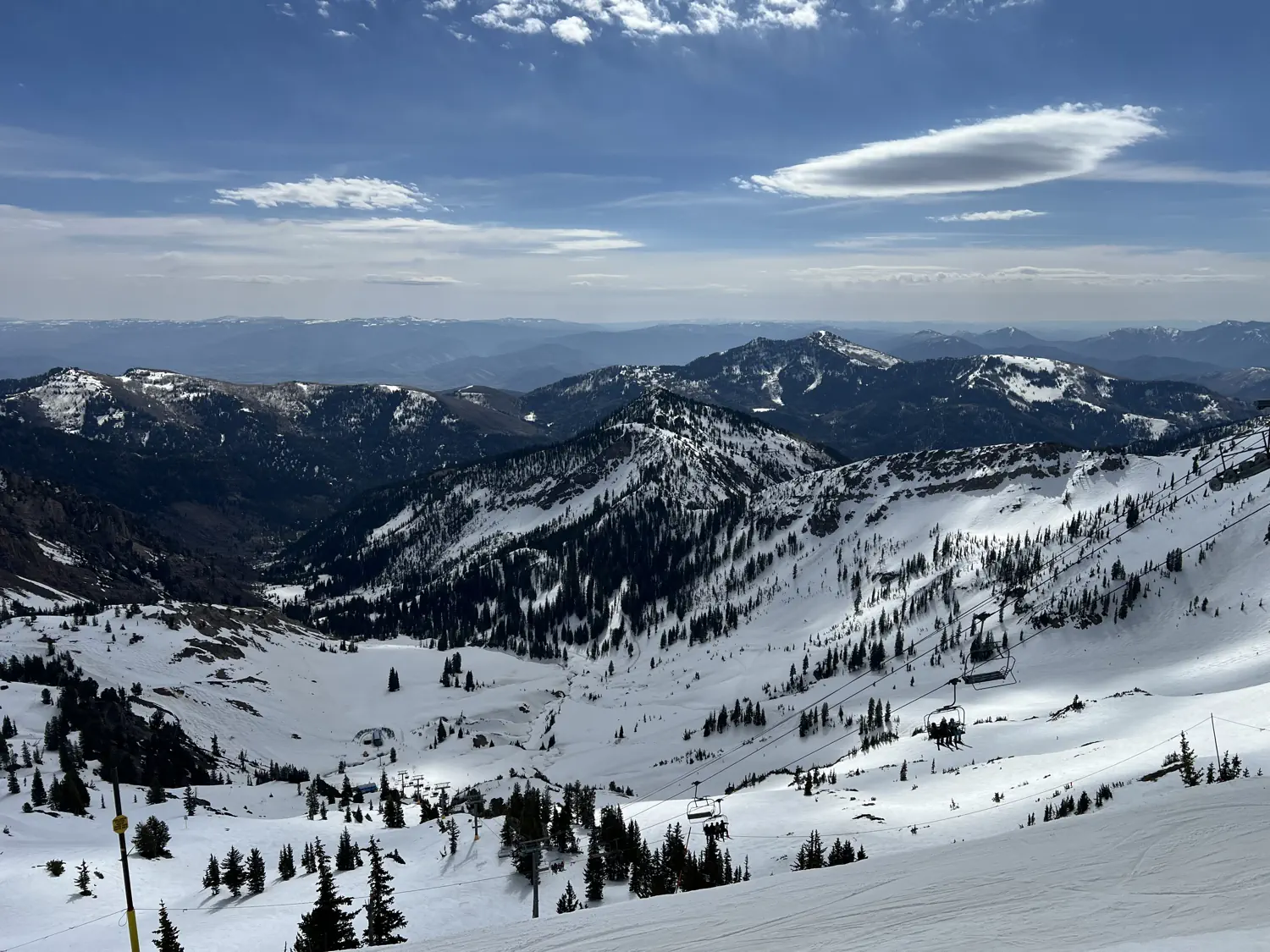 Gallery of skiing at Snowbird, with the snowpack rapidly melting and Lindsey finally getting to try the new hand-breaded fish & chips at The Nest