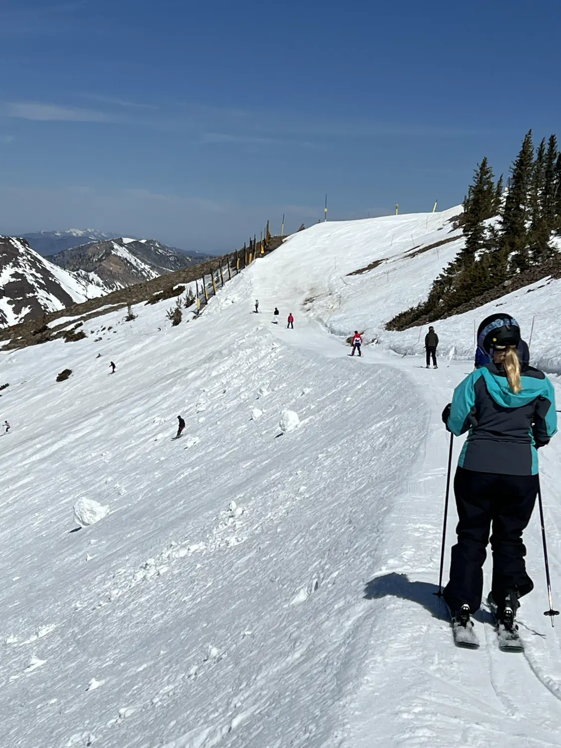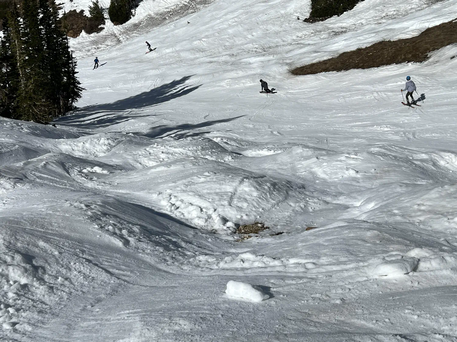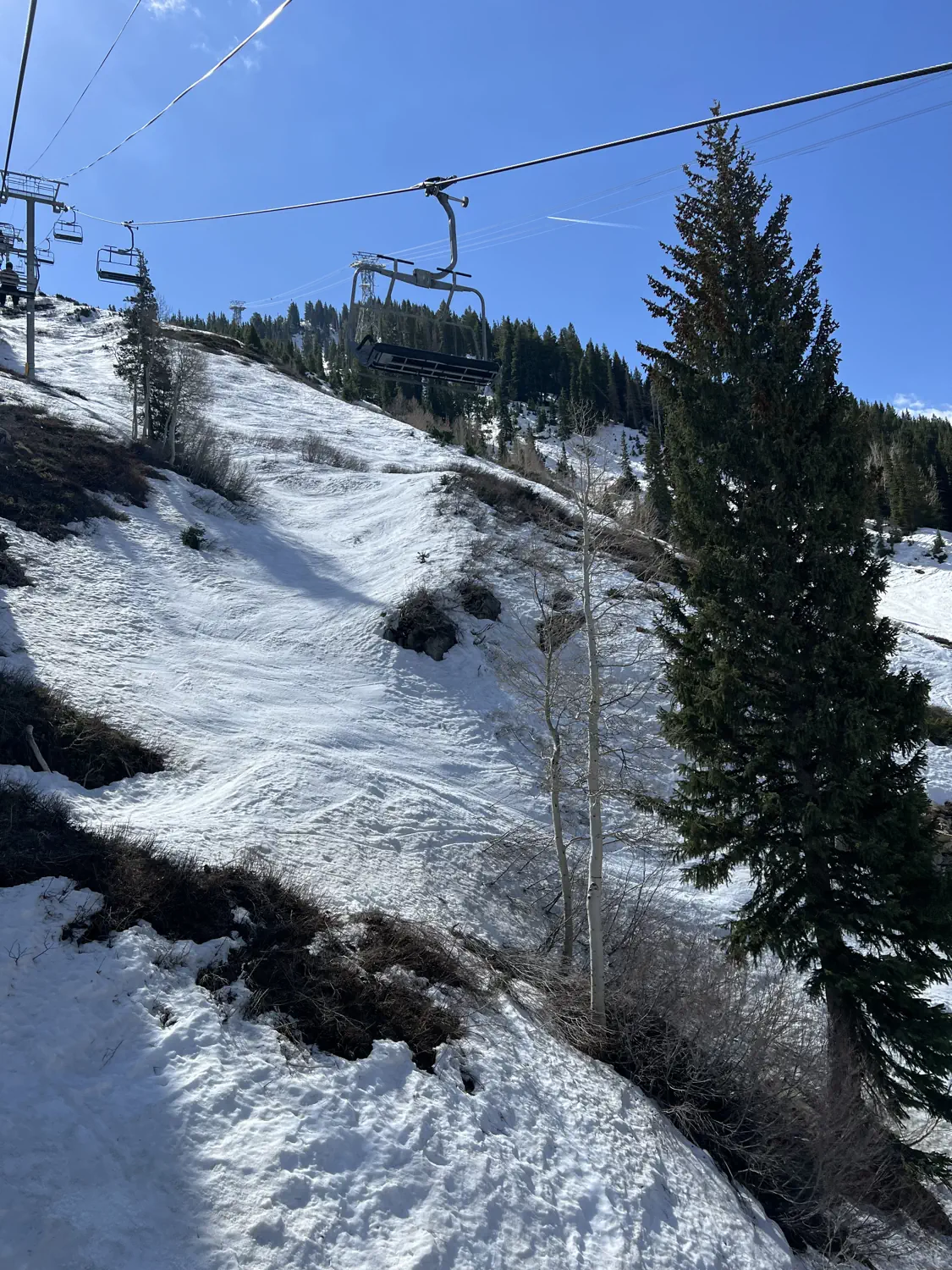 We were greeted with views of ski runs littered with rocks, shrubs, and grasses sticking out. The mountain doesn't typically look like this until late April or early May. Still though, we had a great time skiing the slushy conditions. And, as always, its never really a bad day when you are spending it in the mountains! 🤩