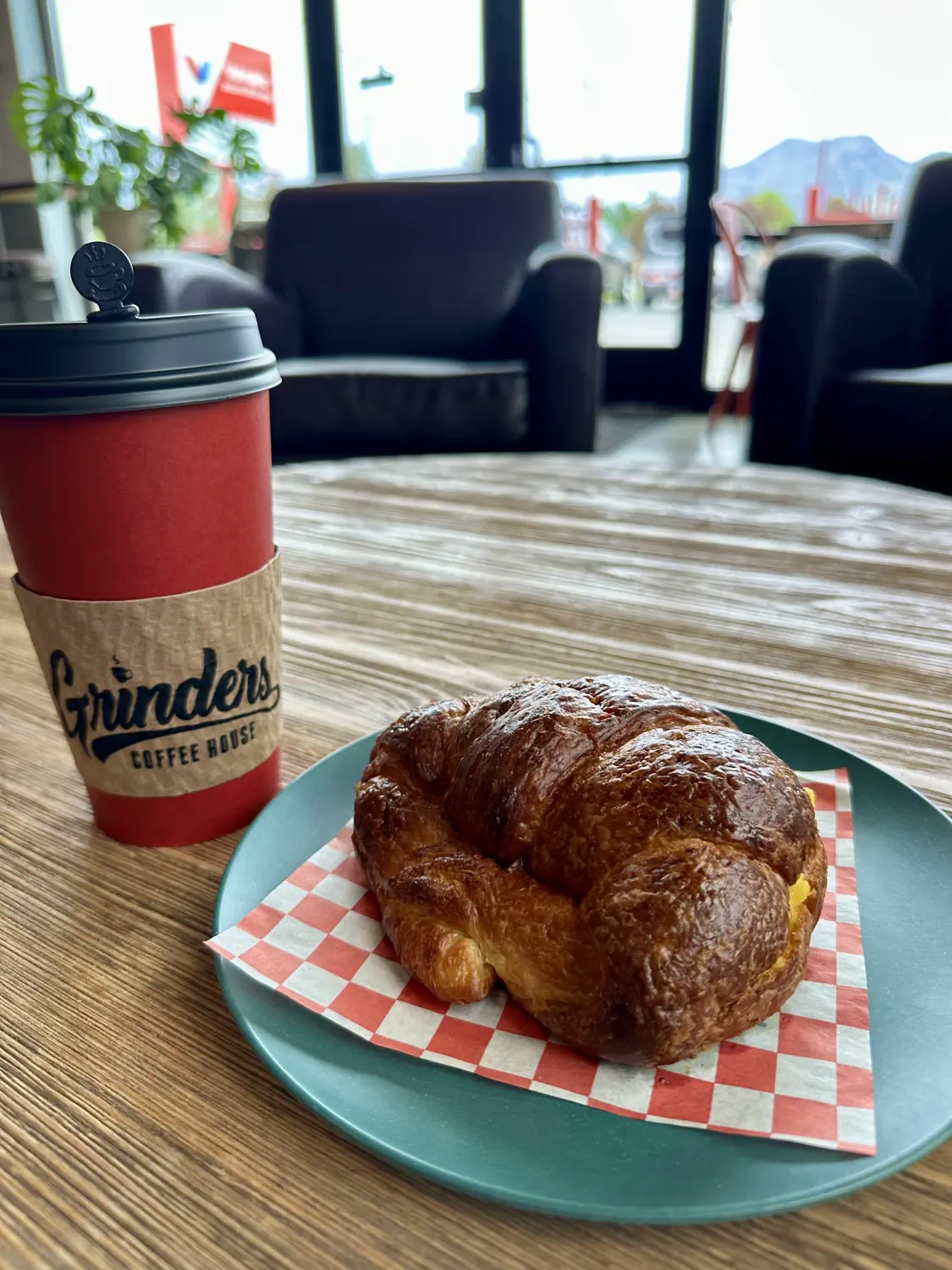 Lindsey was pleasantly surprised by how nice the place was. Grinders has a very comfortable and relaxing setup. She was able to enjoy her coffee and croissant breakfast sandwich as she worked on the last blog post in the Camino de Santiago series.