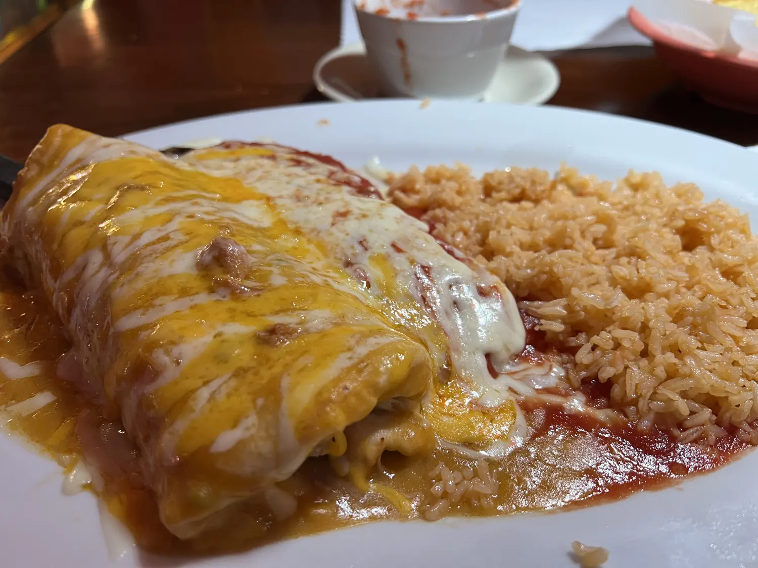 Lindsey ordered the shrimp fajitas while Keith ordered the Pancho Villa meal (a combination of two tacos, a chile verde burrito, and a chile relleno). Both of our meals were huge and very flavorful. The shrimp were cooked perfectly! We each ate our fill and still had enough left over for another full dinner!
