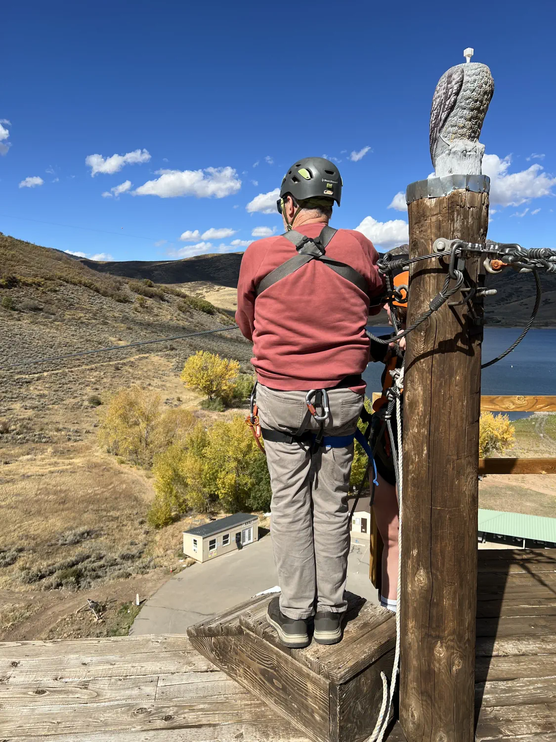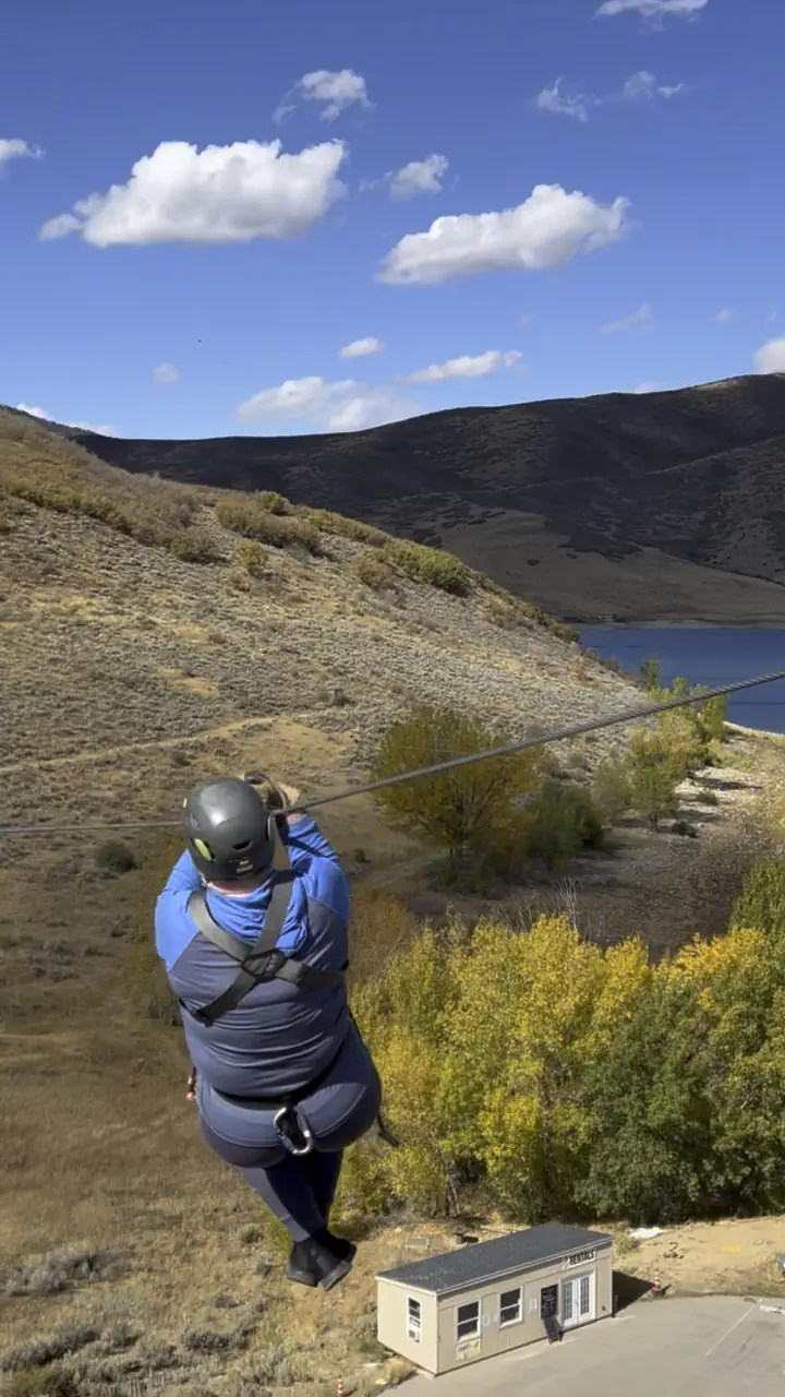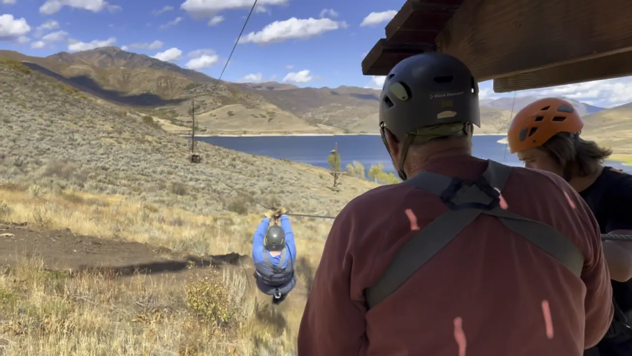 We had originally planned to zipline at Provo Canyon Adventures since it is located so close to their campsite. Unfortunately, that outfit was closed this week. We briefly discussed ziplining at Sundance Mountain Resort, but Keith's mom wasn't too thrilled at the thought of being suspended nearly 500 feet (152 meters) in the air! So, we eventually selected the ziplines at Utah Adventure Park along the Deer Creek reservoir.