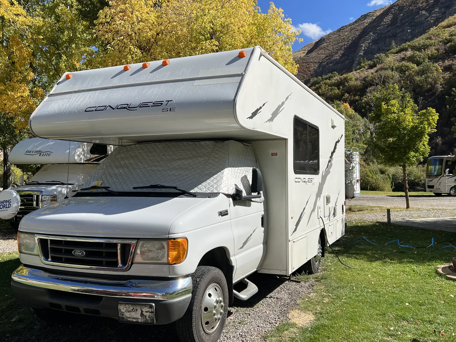 Keith's mom and dad, and their dog Lucy, are visiting us in Utah this year. They drove their motorhome over 1,600 miles (2,575 kilometers) to the Provo River Resort RV park. This campground is nestled in the heart of Provo Canyon along the Provo River.